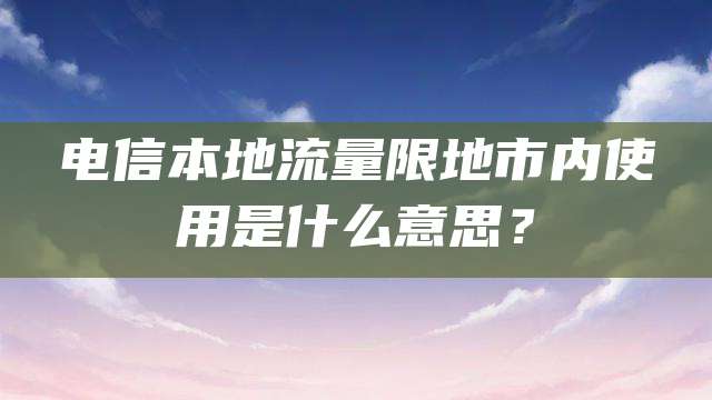 1、电信本地流量限地市内使用的意思是:电信本地流量只能在手机号码归属地级市范围内使用。例如,电信号是北京市的,本地流量就只能在北京市使用,出了北京市就不能使用。