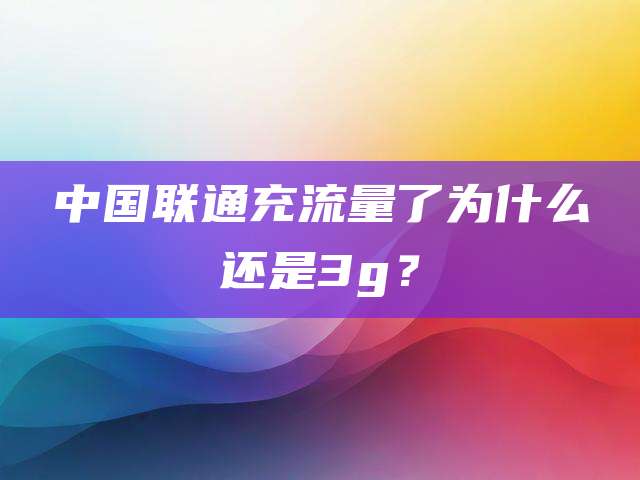 中国联通充了流量还是3G,一般情况下是因为你当时所在的那个位置只有3G信号覆盖,你可以换一个区域在尝试,另外要确定您的手机是可以接收4G信号。