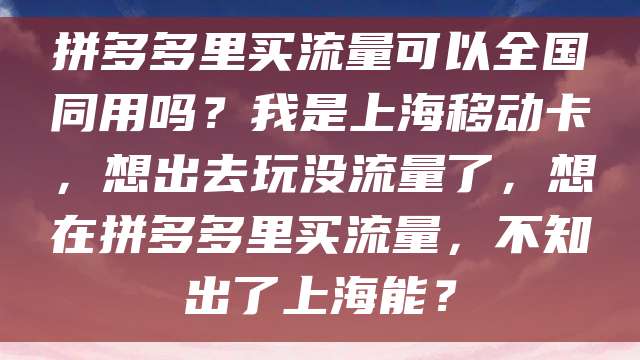 正文 拼多多里买流量可以全国同用吗?我是上海移动卡,想出去玩没流量了,想在拼多多里买流量,不知出了上海能? admin V管理员 /05-16/352阅读 0516 广电-飞卿卡29元/月【192G流量】 192G高速流量+本地号码+可选号 免费办理 电信-飞临卡29元/月【160G流量】 160G流量+100分钟 免费办理 这种最好办流量卡。建议电话卡和流量卡分开,电话卡办最低套餐,只打电话,不要管流量。流量卡只用来上网,套餐很便宜,0月租,全国流量,飞燕物联网有