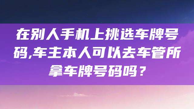 正文 在别人手机上挑选车牌号码,车主本人可以去车管所拿车牌号码吗? admin V管理员 /05-16/439阅读 0516 广电-飞卿卡29元/月【192G流量】 192G高速流量+本地号码+可选号 免费办理 电信-飞临卡29元/月【160G流量】 160G流量+100分钟 免费办理 在当然可以去拿了。你用别人的手机号选车牌,肯先你得登录车管所提供的App平台,在平台会要求你输入你的身份证件号,然后才进行车牌号的选择。确定车牌号后,你凭身份信息就可以去车管所拿属于你的车牌了。但是你如果用的是别人的身份信息,你去拿的话是拿不到的。可以的,只要你登录的是自己的账号就好,没有任何问题的,到车管所里面可以拿到车牌了。