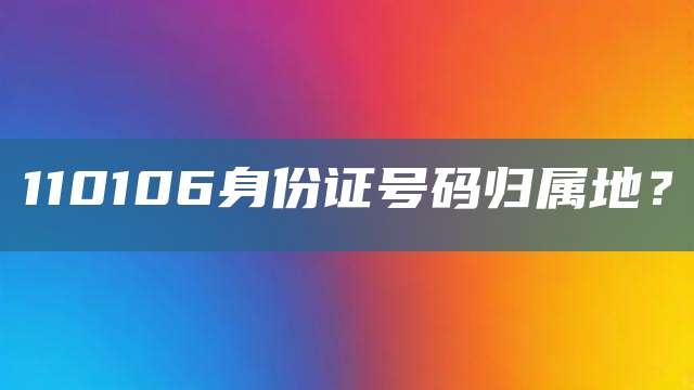 所有110106开头的身份证号码代表出生户口所在地是北京市丰台区。身份证号码是我国为每个公民从出生之日起编定的唯一的、终身不变的身份代码。身份证上的号码,前六位对应省市区,以首次办理身份证的地址排位,不会根据地址或户籍变化而变动。7至14位是出生年月日。15至17位是同一地址码所标示的区域范围内对同年同月同日生人编订的顺序码。其中第17位表示性别,奇数为男性,偶数女性。最后一位是校验码。