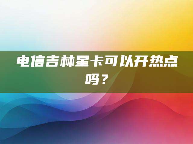 电信吉林星卡是一种手机卡,可以用于拨打电话、发送短信和流量上网。是否可以开热点,需要看具体的热点套餐和手机卡套餐是否包含该功能。如果手机卡套餐包含热点功能,那么可以使用电信吉林星卡来开启热点。如果不包含,那么需要选择其他套餐或者购买其他手机卡才能使用热点功能。
