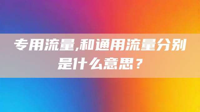 一、通用流量:指没有任何限制的流量。通用流量是2G,3G,4G网络都可以使用的流量。通用流量一般有两种:省内通用流量和国内通用流量。省内通用流量是指只能在省内使用,如果出差或旅游到外省则不能使用;国内通用就是在全国各个地方都能用。二、专用流量:指有某种限制的流量。移动专用流量是指移动4g专区定向流量包的XXXM(根据套餐有所不同)流量。移动专用流量只能在指定的一个手机移动商城使用,是指定的移动自己的软件如(和视频、和阅读、移动MM商城)可以单独使用的流量,使用这些定向软件时不会扣你自身的流量,必须在MM商场的4G专区使用流量。其他上网(比如qq,微信,微博,视频播放器播放视频,网络游戏等等)只会使用自己的通用流量,不能使用4G定向流量。通常限制包括:1、流量使用网络,比如是3G流量还是4G流量。2、时间限制,比如指定时间段时间使用。3、区域限制,在指定区域使用。通用流量和专用流量的区别:1、限制大小不同:通用流量没有任何限制,专用流量有限制,通常有时间限制,区域限制和设置网络限制等2、有无指定APP:通用流量可以在任何APP上使用,专用流量有的需要在指定APP上使用才可生效,例如抖音视频专用流量3、使用先后不同:由于专用流量可能会有时间限制,所以优先使用专用流量,其次使用通用流量