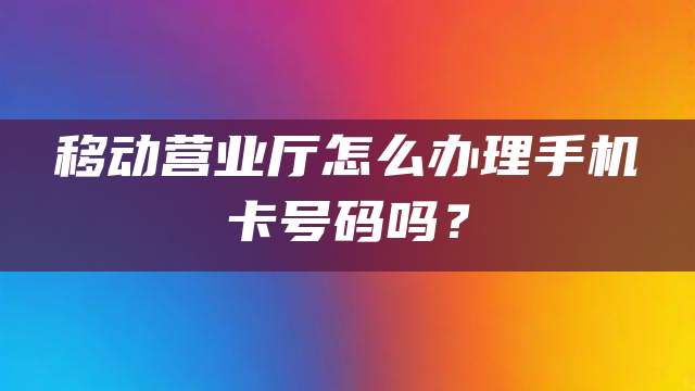 移动营业厅办理手机卡号码要机主本人亲自携带个人身份证去当地营业厅办理,然后填写个人资料表申请办理即可办理。