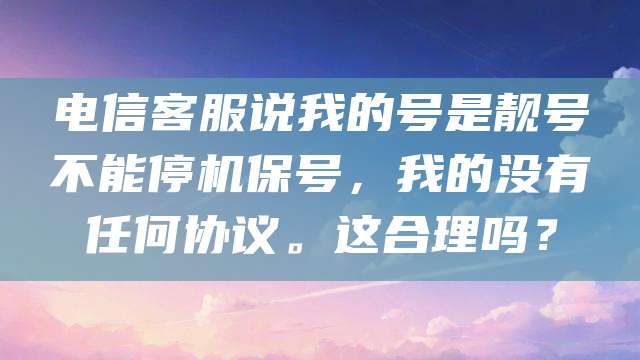 正文 电信客服说我的号是靓号不能停机保号,我的没有任何协议。这合理吗? admin V管理员 /05-26/445阅读 0526 广电-飞卿卡29元/月【192G流量】 192G高速流量+本地号码+可选号 免费办理 电信-飞临卡29元/月【160G流量】 160G流量+100分钟 免费办理 您好。电信靓号本身就有不能停机保号的规定的,一般在入网的时候就有说明,这个跟其他合约协议是不冲突的。