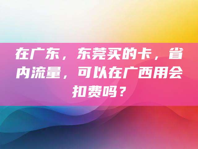 正文 在广东,东莞买的卡,省内流量,可以在广西用会扣费吗? admin V管理员 /05-27/91阅读 0527 广电-飞卿卡29元/月【192G流量】 192G高速流量+本地号码+可选号 免费办理 电信-飞临卡29元/月【160G流量】 160G流量+100分钟 免费办理 4一般广西移动号码办理的区内流量是广西区内流量,仅限在广西区内使用广西区外无法使用;2018年7月1日起取消流量漫游费,7月1日起省内流量将变为国内(不含港澳台)流量。如办理的是广东移动业务需咨询广东移动客服了解。
