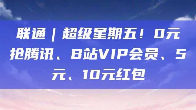 正文 联通|超级星期五!0元抢腾讯、B站VIP会员、5元、10元红包 admin V管理员 /04-11/508阅读 0411 广电-飞卿卡29元/月【192G流量】 192G高速流量+本地号码+可选号 免费办理 电信-飞临卡29元/月【160G流量】 160G流量+100分钟 免费办理 超级星期五|福利0元抢活动时间:每周五10点、16点整点开抢!(2场)活动对象:安徽联通用户活动奖品:腾讯会员月卡、哔哩哔哩会员周卡、5元/10元红包、蜜雪冰城奶茶券、饿了么红包、滴滴快车券,限时0元开抢!活动规则:每周五10点/16点,共2场海量红包、会员等好礼正在派发,限时限量,错过再等一周!心动不如行动,定好闹钟,解锁心跳时刻!