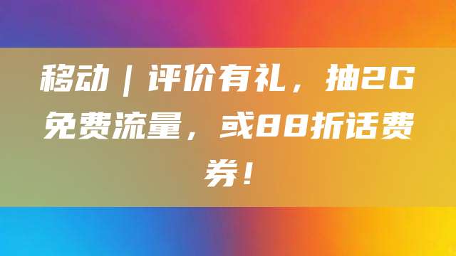 正文 移动|评价有礼,抽2G免费流量,或88折话费券! 流量俱乐部 V管理员 /04-14/527阅读 0414 广电-飞卿卡29元/月【192G流量】 192G高速流量+本地号码+可选号 免费办理 电信-飞临卡29元/月【160G流量】 160G流量+100分钟 免费办理 评价有礼活动时间:即日起—2025年6月30日活动对象:全网移动用户(限受邀用户)活动奖品:数量有限,先到先得!❶2GB日包流量,共814745份❷或88折话费券,共42882份(冲50及以上可用)活动规则:受邀用户进入页面参与活动,完成评价问卷,即可获得1次抽奖机会,随机抽取88折话费券或2GB日包流量券(非必中)每月可领取1次!记得来领!