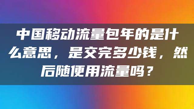 正文 中国移动流量包年的是什么意思,是交完多少钱,然后随便用流量吗? admin V管理员 /07-24/163阅读 0724 广电-飞卿卡29元/月【192G流量】 192G高速流量+本地号码+可选号 免费办理 电信-飞临卡29元/月【160G流量】 160G流量+100分钟 免费办理 流量年包,即您所购买的流量,一次性扣费,流量一次性到账,流量的使用期限较长,1年内流量均有效,可以使用。需要注意的是,如果流量提前用完,您可根据自己的实际需求,订购其他流量业务。流量年包,即您所购买的流量,一次性扣费,流量一次性到账,流量的使用期限较长,1年内流量均有效,可以使用。需要注意的是,如果流量提前用完,您可根据自己的实际需求,订购其他流量业务。