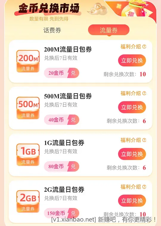 正文 移动用户免费兑换流量活动:邀请有礼 流量俱乐部 V管理员 /03-30/543阅读 0330 广电-飞卿卡29元/月【192G流量】 192G高速流量+本地号码+可选号 免费办理 电信-飞临卡29元/月【160G流量】 160G流量+100分钟 免费办理 移动App-搜 邀请有礼,点进去有100金币,可选择兑换