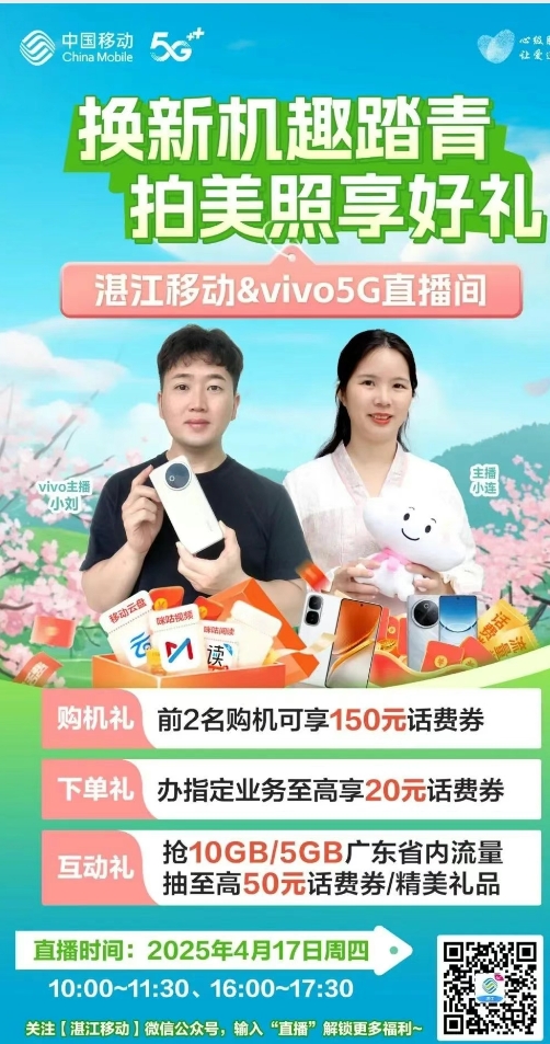 正文 湛江移动|抢10G、5G免费流量,抽至高50元话费券 流量俱乐部 V管理员 /04-17/456阅读 0417 广电-飞卿卡29元/月【192G流量】 192G高速流量+本地号码+可选号 免费办理 电信-飞临卡29元/月【160G流量】 160G流量+100分钟 免费办理 周四直播抢话费、流量好礼!一共2场:10:00~11:30 、16:00~17:30感兴趣的,可以蹲点进入活动路径:长按识别【图片】中二维码进入活动
