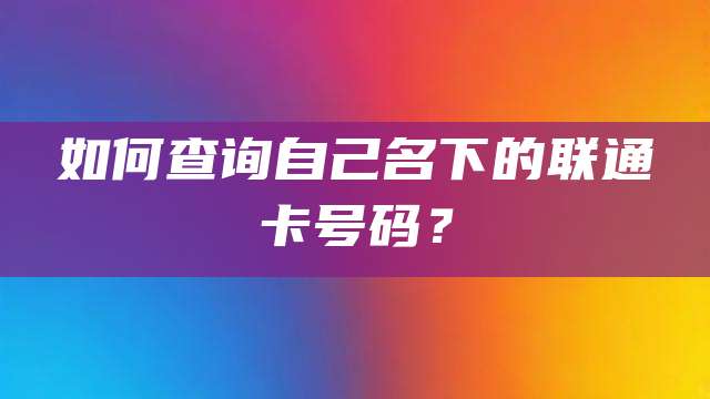 正文 如何查询自己名下的联通卡号码? admin V管理员 /10-01/19阅读 1001 广电-飞卿卡29元/月【192G流量】 192G高速流量+本地号码+可选号 免费办理 电信-飞临卡29元/月【160G流量】 160G流量+100分钟 免费办理 查询自己名下的联通卡号码方法如下:联通官网,联通手机营业厅,当地营业厅都可以查询第一、在联通官网10010.com,联通用户登陆后,在“自助服务”的“查询”中有“我的基本信息”。点开后,在登陆号码的右边可以看到“我的其他联通号码查询”,点击即可看到名下的所有联通号码。第二、在手机端的联通手机营业厅APP,“服务”的“查询”中有图标“我的基本信息”,点开后中也有“我的其他联通号码”,点击后同样可以查询到你同一个证件号下的所有联通号码。