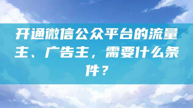 正文 开通微信公众平台的流量主、广告主,需要什么条件? admin V管理员 /前天/14阅读 1001 广电-飞卿卡29元/月【192G流量】 192G高速流量+本地号码+可选号 免费办理 电信-飞临卡29元/月【160G流量】 160G流量+100分钟 免费办理 1广告主只要是正规企业,都可以开通。