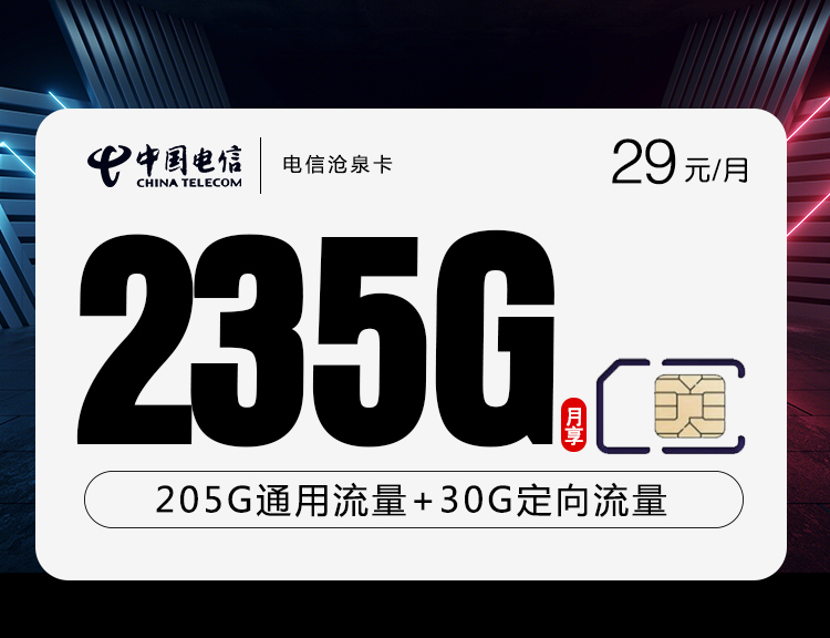 优惠后资费:29元/月=205G通用+30G定向+100分钟