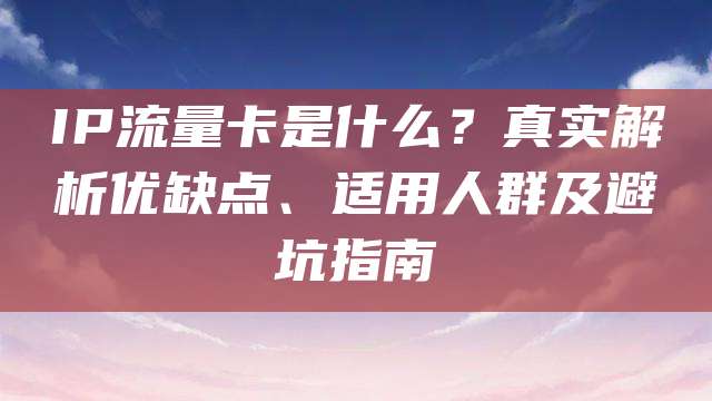 当你刷短视频卡顿时,是不是总想换个更稳的流量卡?最近热门的「IP流量卡」引发了不少讨论。本文将用大白话讲透IP流量卡的真实定义,分析它和普通流量卡的核心区别,整理学生党、出差族等6类适用人群,并给出3个避坑选购技巧。文章还会揭秘运营商不会主动告诉你的3个隐藏问题,建议收藏备用。