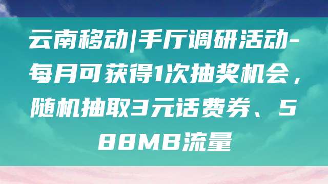 正文 云南移动|手厅调研活动-每月可获得1次抽奖机会,随机抽取3元话费券、588MB流量 流量俱乐部 V管理员 /04-21/514阅读 0421 广电-飞卿卡29元/月【192G流量】 192G高速流量+本地号码+可选号 免费办理 电信-飞临卡29元/月【160G流量】 160G流量+100分钟 免费办理 云南移动手厅调研活动时间:即日起—2025年6月30日活动规则:每月可获得1次抽奖机会,随机抽取3元话费券、588MB流量。