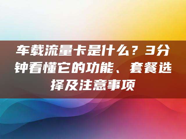 你是不是总在车上遇到手机信号差、导航延迟、音乐加载慢的问题?这篇文章将用大白话告诉你车载流量卡的真实用途——它不仅能让你的车载导航实时更新路况,还能让全车人共享高速网络。文中详细拆解了流量卡的资费套路、运营商选择技巧,以及那些容易踩坑的隐藏问题。看完你就知道怎么选到最划算的方案了!