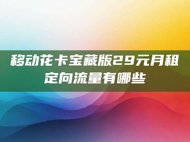 移动的定向流量有头条系、百度系、网易系、腾讯系、阿里系等上百款APP,包括百度手机APP、百度地图、百度贴吧、百度翻译、百度百科、爱奇艺、好看视频、网易云音乐、网易新闻、网易游戏、腾讯视频、和平精英、优酷视频、手机淘宝、新浪微博、喜马拉雅、今日头条、抖音、火山小视频、懂车帝、咪咕视频、咪咕音乐等,根据订购的流量包不同,免流的APP也不同。