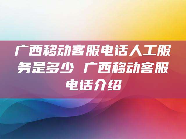 广西移动客服电话是10086。如需接入人工服务,请按照电话中的语音提示操作,通常会提示您按某个键(如“1”键)选择相关服务,然后再按“0”键接通人工客服。具体的操作流程可能会随时间有所调整,因此在拨打时请留意最新的语音导航提示。
