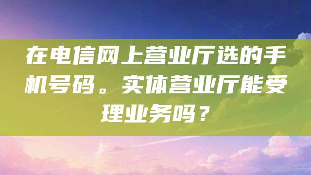 正文 在电信网上营业厅选的手机号码。实体营业厅能受理业务吗? admin V管理员 /04-26/434阅读 0426 广电-飞卿卡29元/月【192G流量】 192G高速流量+本地号码+可选号 免费办理 电信-飞临卡29元/月【160G流量】 160G流量+100分钟 免费办理 您好 可以的,在电信网上营业厅办理的手机号码和在实体营业厅办理的号码是一样的,可以正常在实体营业厅办理业务、套餐变更等。