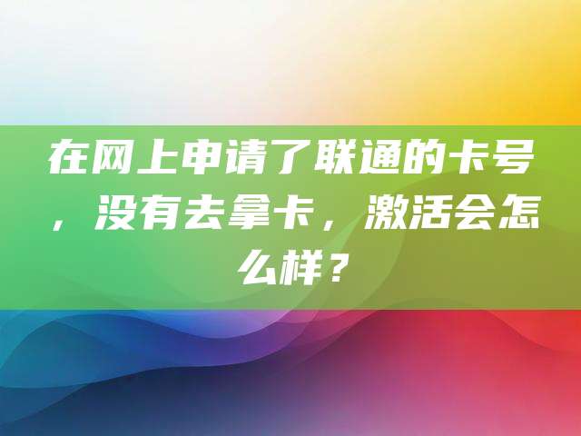正文 在网上申请了联通的卡号,没有去拿卡,激活会怎么样? admin V管理员 /04-27/383阅读 0427 广电-飞卿卡29元/月【192G流量】 192G高速流量+本地号码+可选号 免费办理 电信-飞临卡29元/月【160G流量】 160G流量+100分钟 免费办理 如果没有签收,是会自动进行退单的。如果签收了15天内未激活也会自动作废