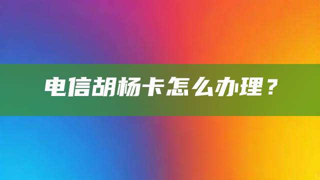 关于这个问题,电信胡杨卡是中国电信推出的一款全新的移动通信卡,主要用于提供网络通信、数据传输和移动支付等服务。如果您想办理电信胡杨卡,可以按照以下步骤进行: