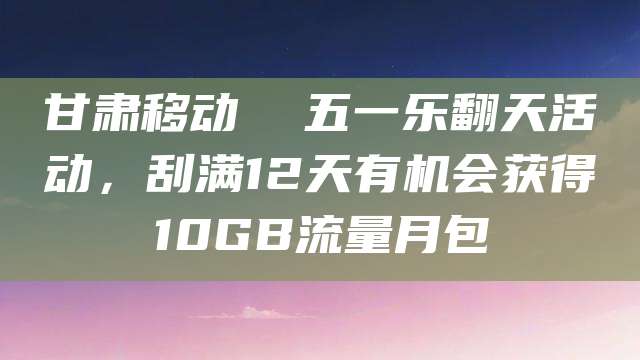 正文 甘肃移动 五一乐翻天活动,刮满12天有机会获得10GB流量月包 流量俱乐部 V管理员 /04-29/519阅读 0429 广电-飞卿卡29元/月【192G流量】 192G高速流量+本地号码+可选号 免费办理 电信-飞临卡29元/月【160G流量】 160G流量+100分钟 免费办理 甘肃五一乐翻天活动时间:即日起—2025年5月6日活动规则:每天可参与刮奖,刮满12天有机会获得10GB流量月包、100分钟通话和8.88话费等。注意12天内,如果漏签,不能进行补签,也不能抽取大奖。