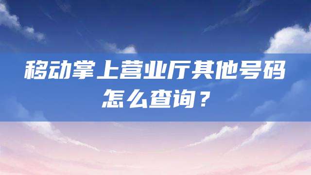 在移动app怎么查自己的另一个号码:点击左上角登录处,里面有添加帐号的设置,以后可以通过账户切换来查询多个账户的余额。退出手机营业厅,用另一个号码登录手机营业厅,可以查询的。如知道服务密码,也可以拨打10086查询的。