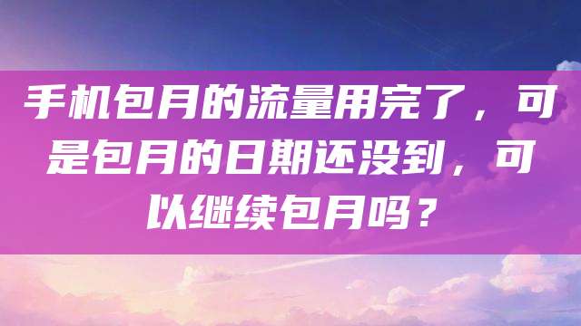 正文 手机包月的流量用完了,可是包月的日期还没到,可以继续包月吗? admin V管理员 /05-07/483阅读 0507 广电-飞卿卡29元/月【192G流量】 192G高速流量+本地号码+可选号 免费办理 电信-飞临卡29元/月【160G流量】 160G流量+100分钟 免费办理 若是移动卡 当月你的流量包用完后就开始从花费中扣费了。而且你要在办包月的流量包 只有到下月才会生效,如果你是新入网用户(就是手机卡当月办理的)你还可以更改流量包,不过还是会扣去费用