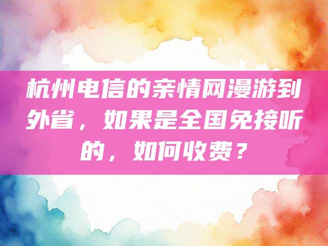 正文 杭州电信的亲情网漫游到外省,如果是全国免接听的,如何收费? admin V管理员 /05-08/449阅读 0508 广电-飞卿卡29元/月【192G流量】 192G高速流量+本地号码+可选号 免费办理 电信-飞临卡29元/月【160G流量】 160G流量+100分钟 免费办理 电信如果亲情网是出了省有效的话,那A用亲情网号码拨打B的号码,是铁定不收费的。