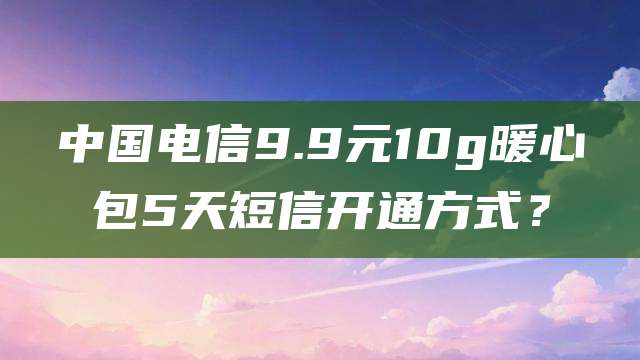 正文 中国电信9.9元10g暖心包5天短信开通方式? admin V管理员 /05-13/423阅读 0513 广电-飞卿卡29元/月【192G流量】 192G高速流量+本地号码+可选号 免费办理 电信-飞临卡29元/月【160G流量】 160G流量+100分钟 免费办理 1中国电信9.9元10g短信包五天短信开通方式?我的回答如下:中国电信9.9元10g的流量卡一般都是通过邮寄到用户手中。在它的包装上面,一般都有二维码。只要我们扫描上面的二维码,并按照上面的流程进行操作,就可以顺利的开通我们的流量卡。